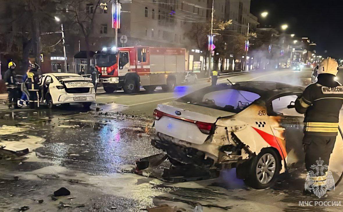 Один из автомобилей загорелся после удара, но пожарные оперативно ликвидировали возгорание. Все пострадавшие были госпитализированы, погибших в аварии нет.
