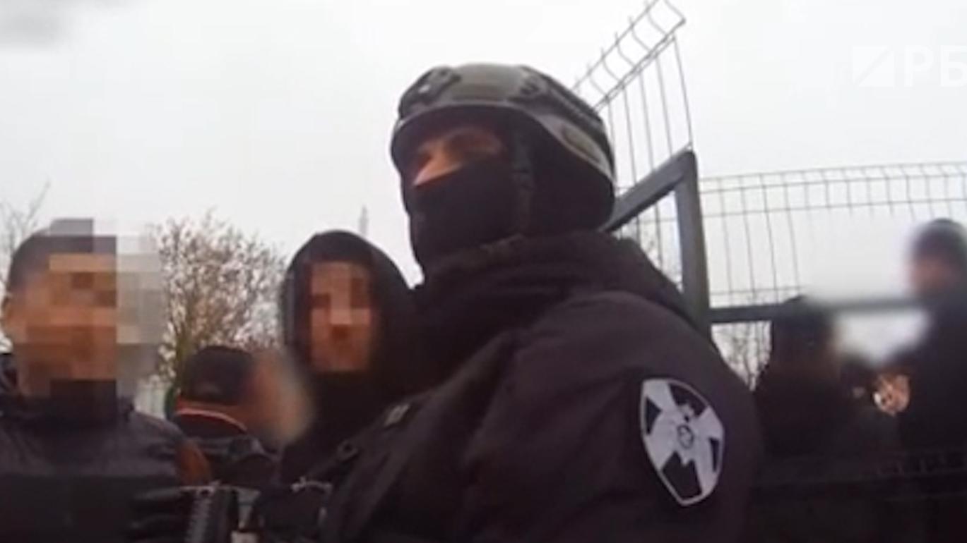 На распространенных кадрах видно, как силовики заходят во двор организации, где в это время молятся сотни мужчин. Затем начинается проверка документов.