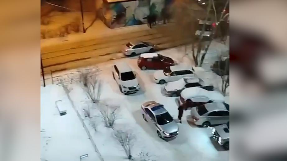 На видеозаписи запечатлен двор дома, где произошла трагедия. На месте находятся несколько автомобилей правоохранительных органов и экстренных служб.