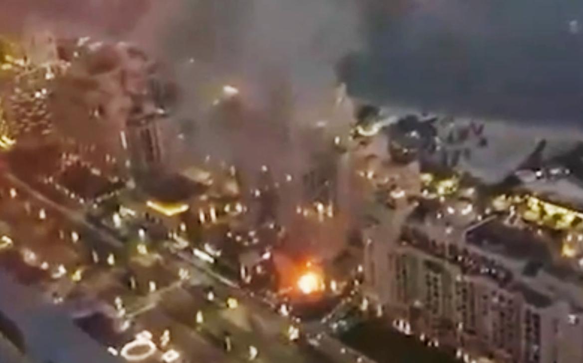 Обломки ракеты упали в районе Палм-Джумейра, после чего у одного из отелей начался пожар.