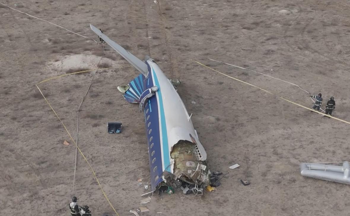Обломки пассажирского самолета авиакомпании Azerbaijan Airlines
