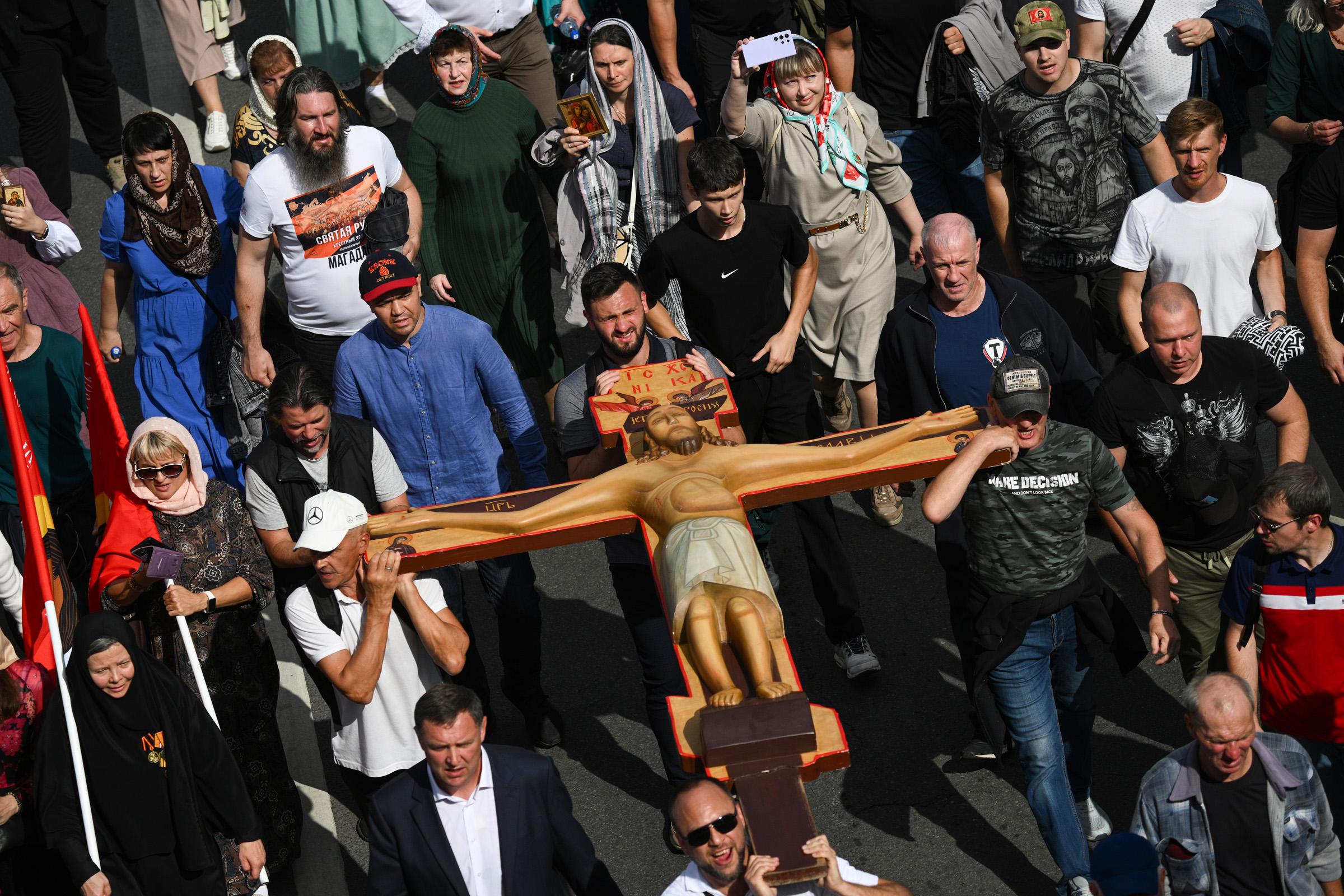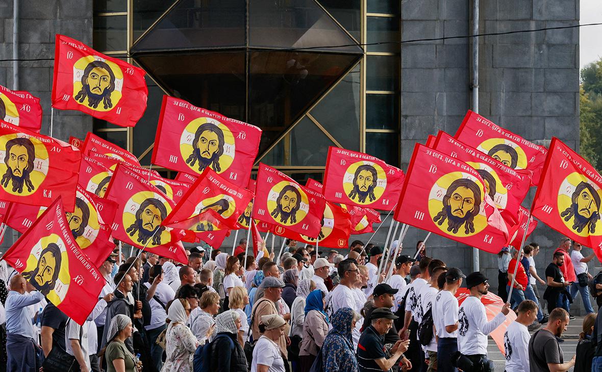 Росгвардия оценила количество пришедших на крестный ход в «более 40 тыс.» человек. Ведомство занималось охраной порядка.