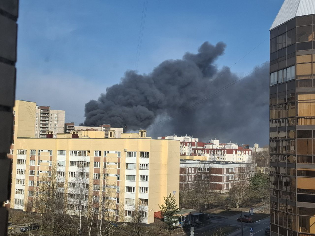 Горит ангар на улице Маршала Новикова площадью 5 тыс. кв. м. «Сведения о пострадавших на данный момент не поступали», — добавили в МЧС.