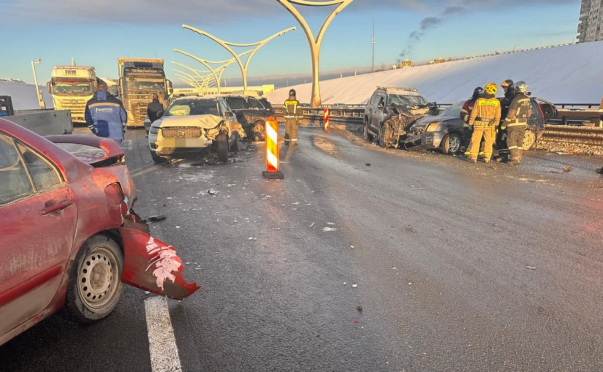 Авария произошла около 12:30 на участке от Богатырского проспекта в сторону проспекта Крузенштерна. В результате столкновения шести машин водитель одной из них был легко травмирован подушкой безопасности.