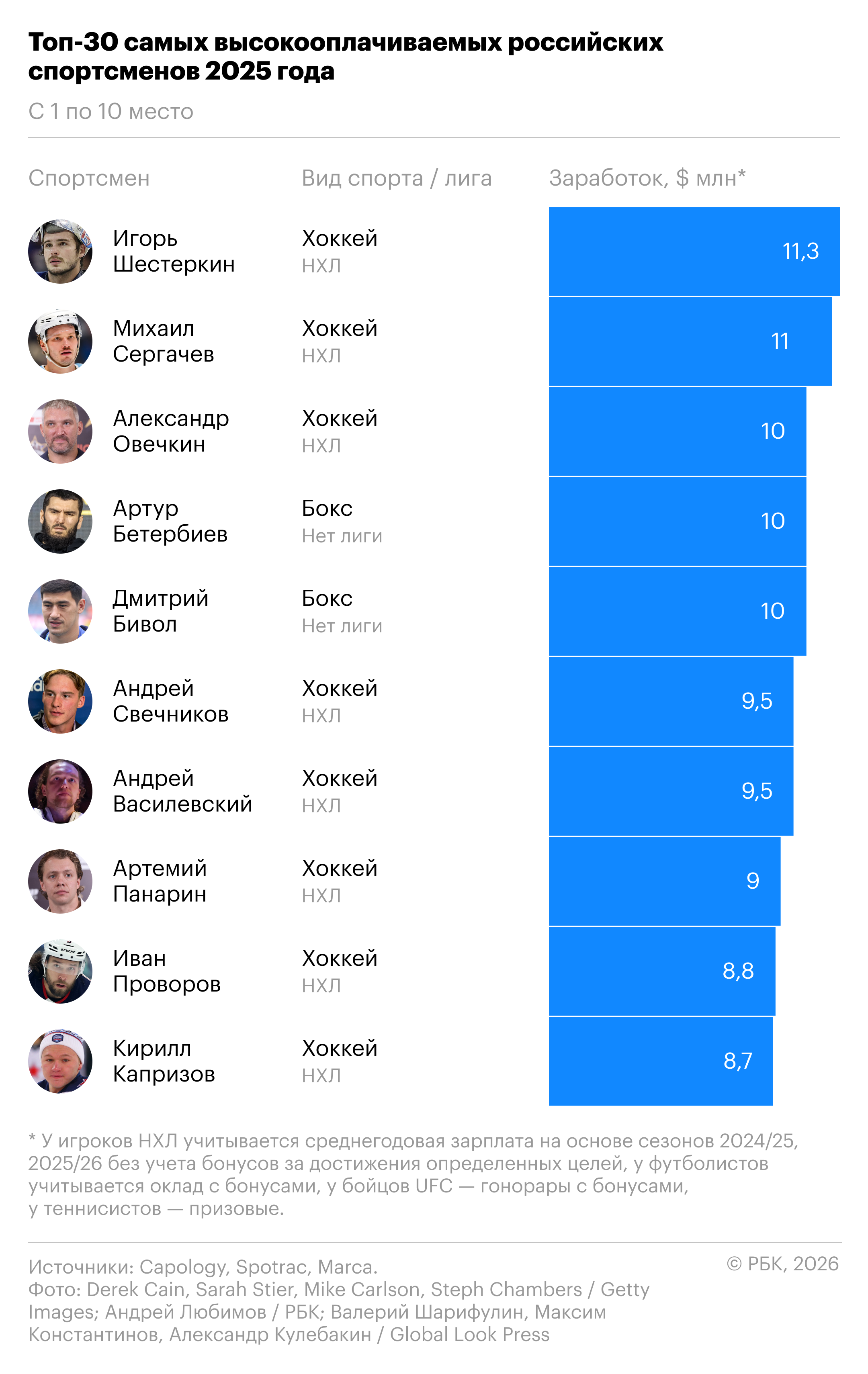«РБК Спорт» представляет рейтинг самых высокооплачиваемых российских спортсменов за 2025 год