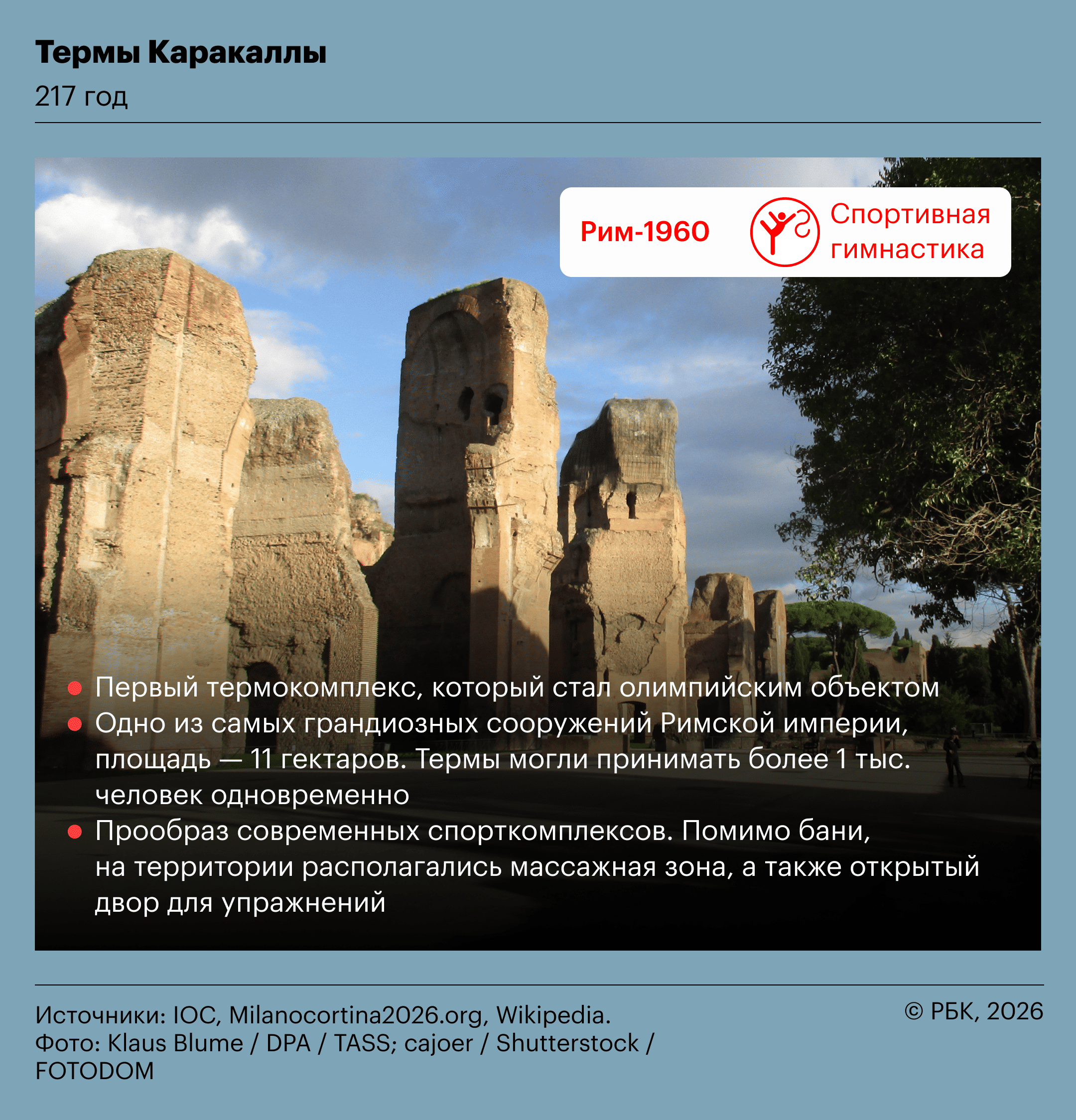 Впервые в истории основное мероприятие Олимпиады пройдет в амфитеатре времен Римской империи. «Арена ди Верона» построена в 30 году и является древнейшим олимпийским объектом за пределами Греции.