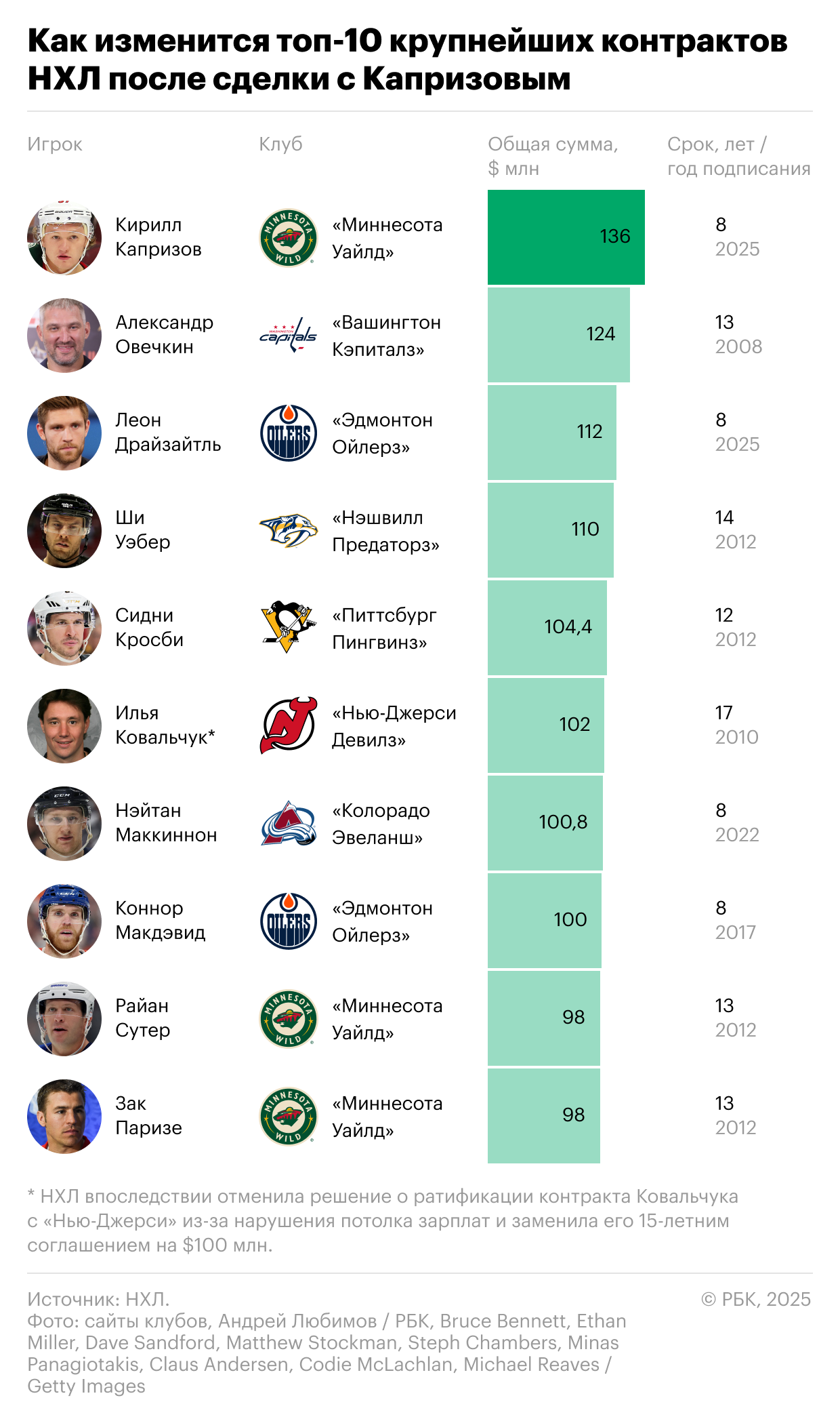 Как Капризов изменит топ-10 крупнейших контрактов в истории НХЛ